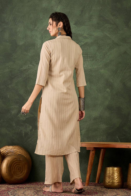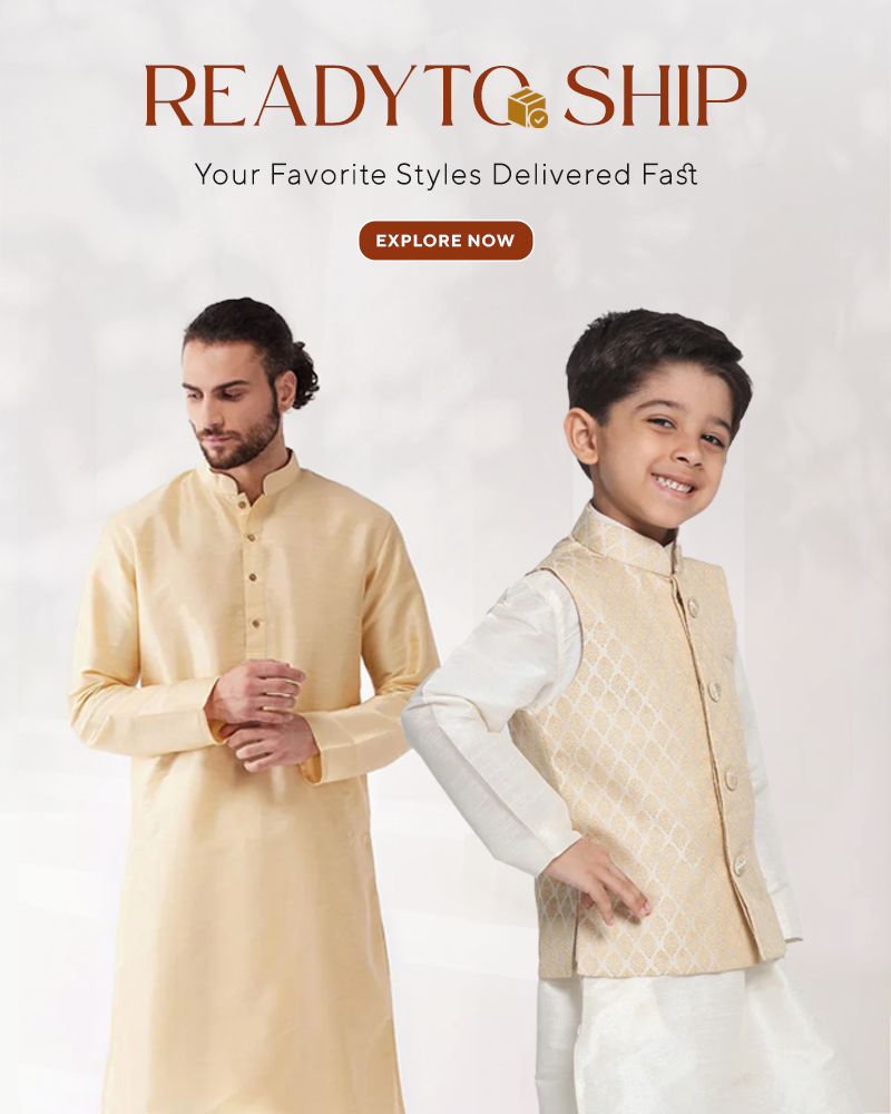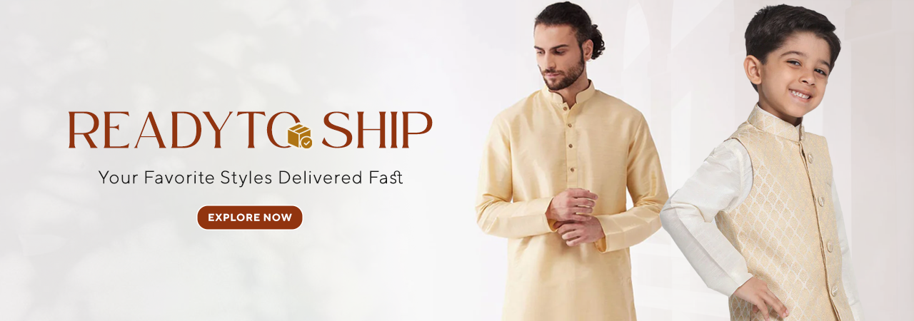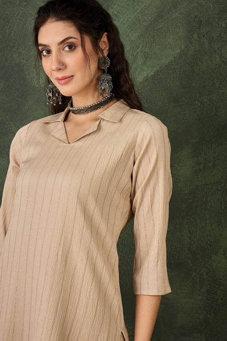 Men's Golden Polyester Cotton Weave Full Sleeves Short Kurta