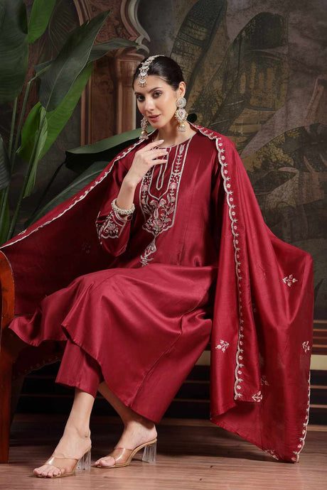 Men's Burgundy Cotton Handloom Full Sleeves Short Kurta