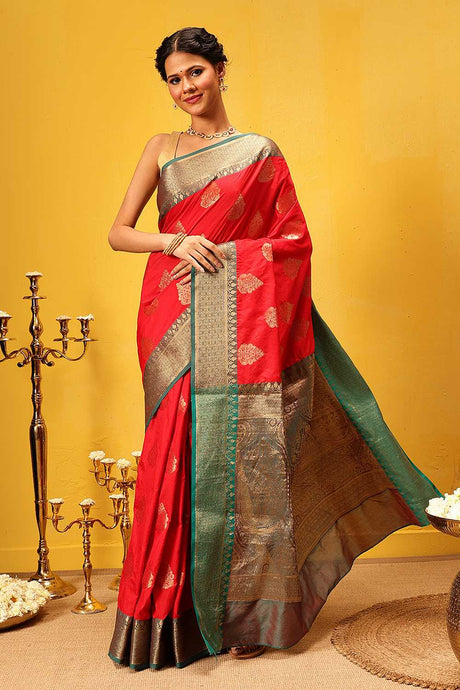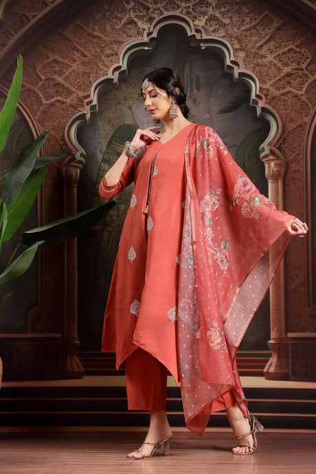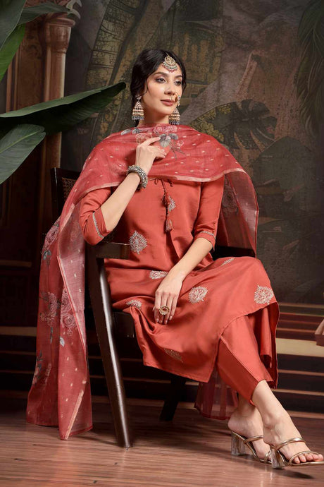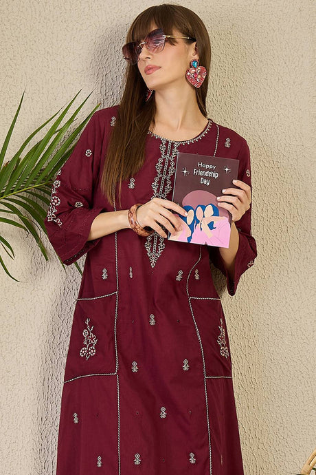 Men's Cotton Art Silk Embroidery Short Kurta Top In Red