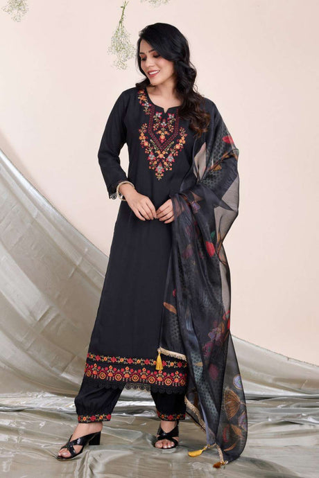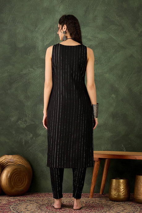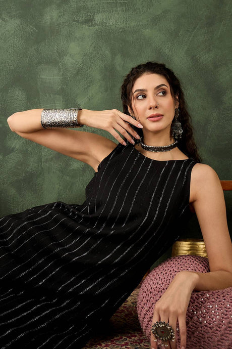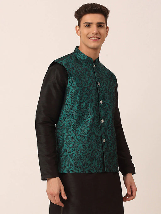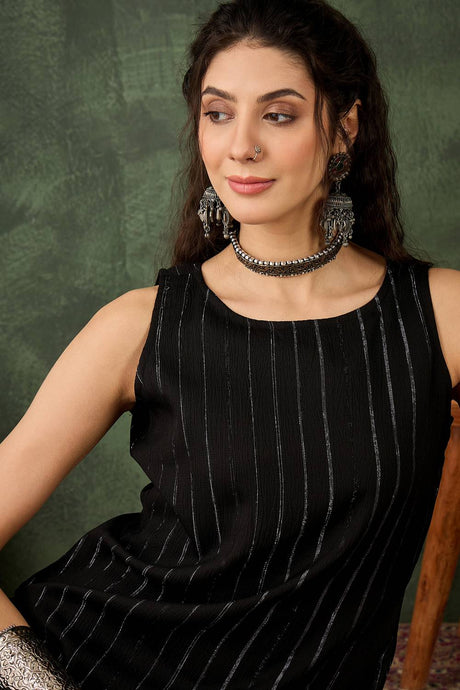 Men's Cotton Art Silk Embroidery Short Kurta Top In Black