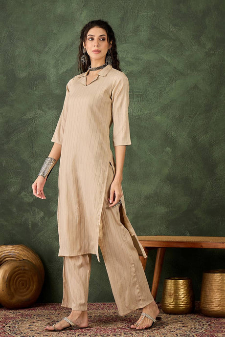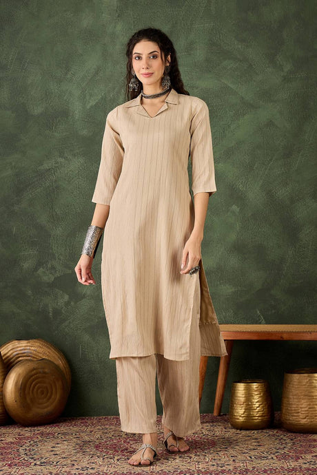 Men's Light Cream Solid Full Sleeve Long Kurta Top