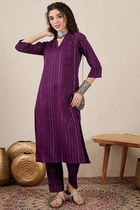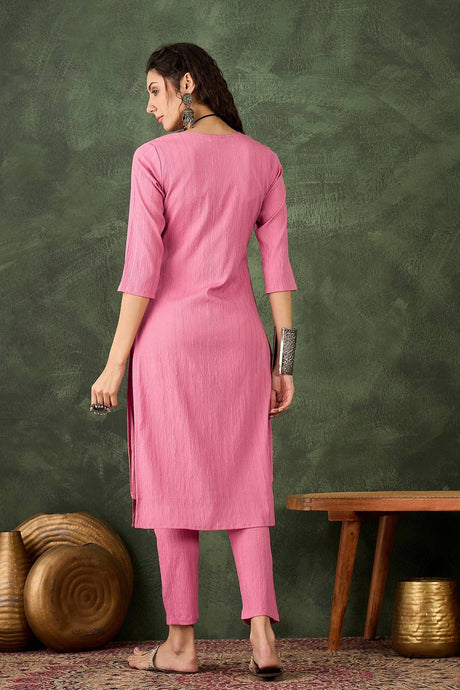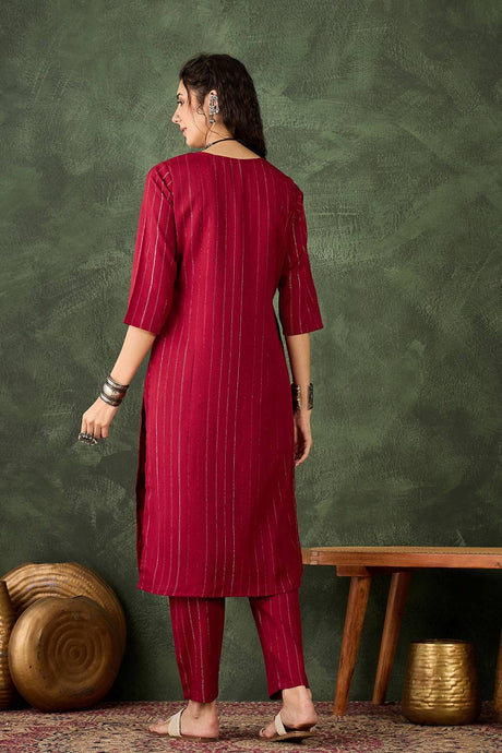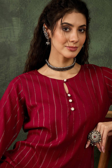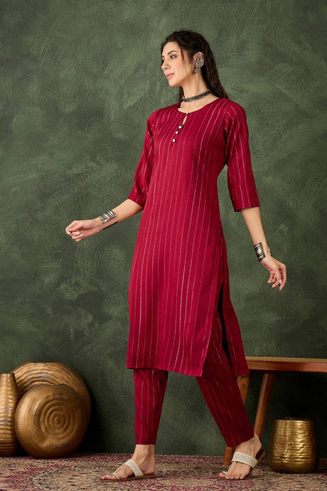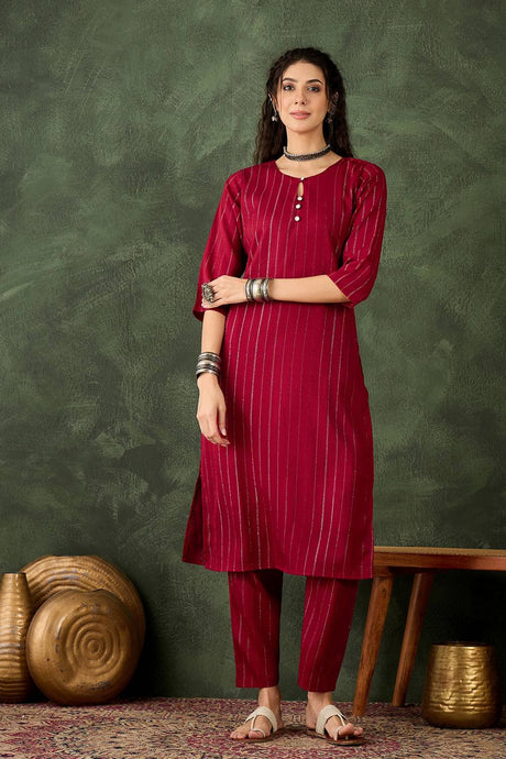 Maroon Floral Embroidered Rayon Kurti Pant Set
