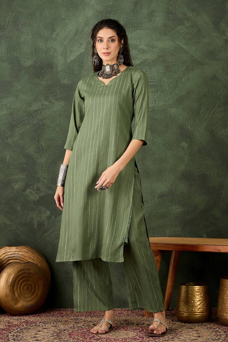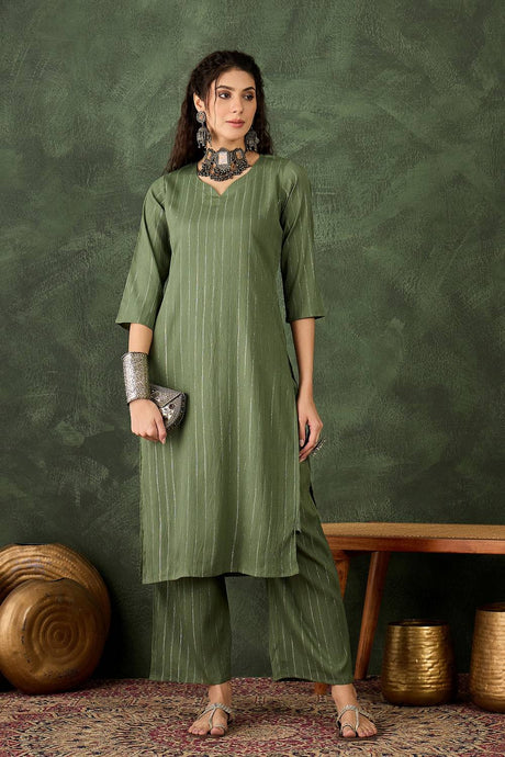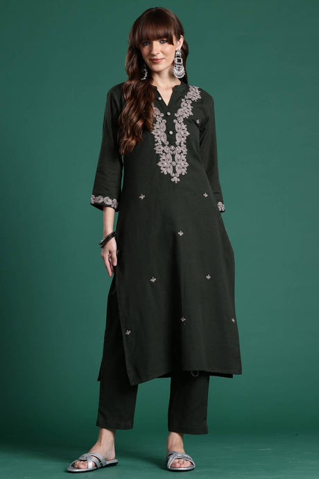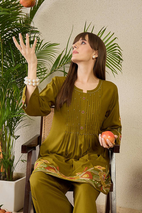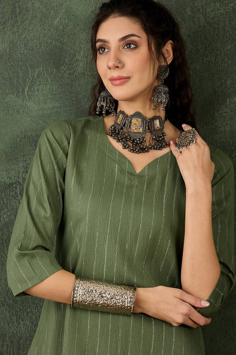 Men's Blended Cotton Solid Kurta Top In Olive Green