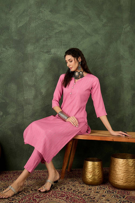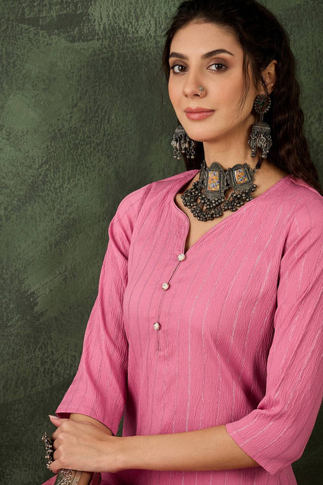 Men's Pure Cotton Stripe Printed Long Kurta Top In Light Pink