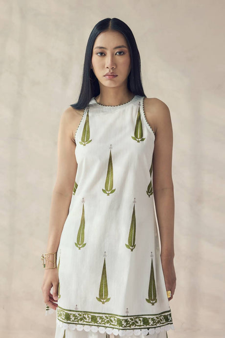 Men's White Cotton Chikankari Embroidered Straight Kurta Top