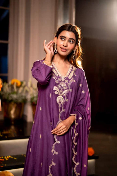 Violet Sequin with Embroidered Banarsi Lehenga