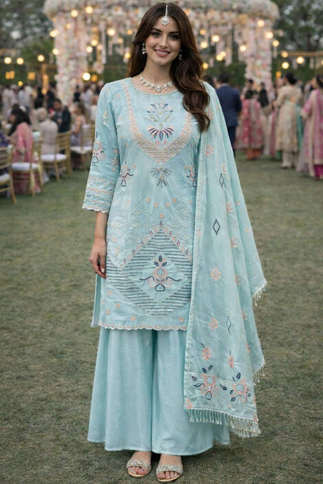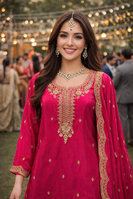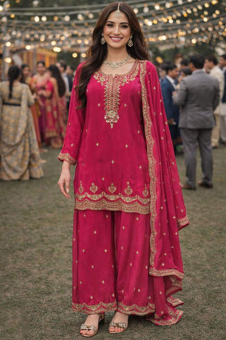 Pink Sequin with Embroidered Chanderi Sharara Suits