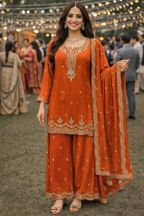 Rust Sequin with Embroidered Silk Anarkali Suits