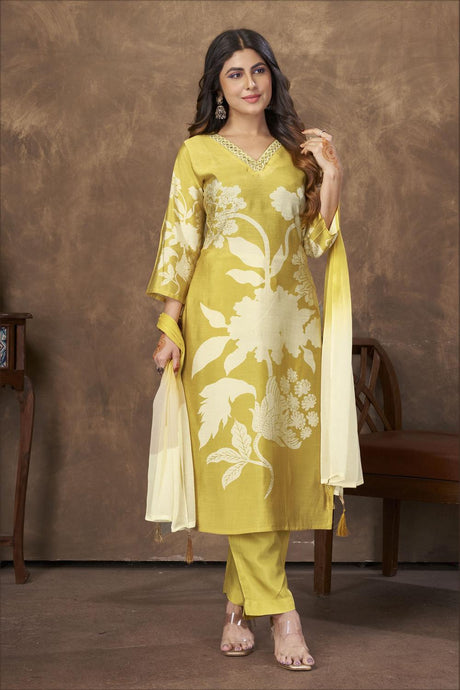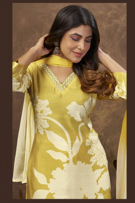 Mustard Floral Embroidered Silk Anarkali Suit (WM31-MUSTARD)