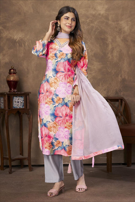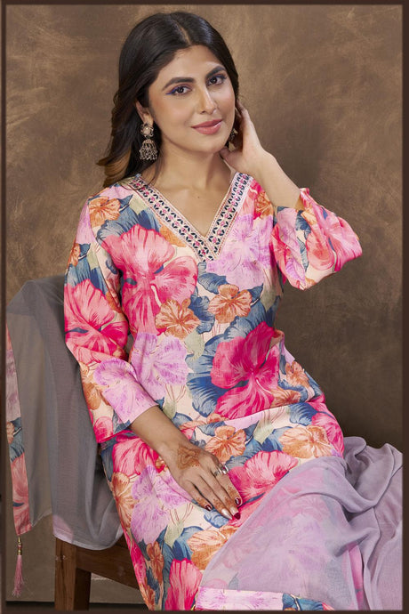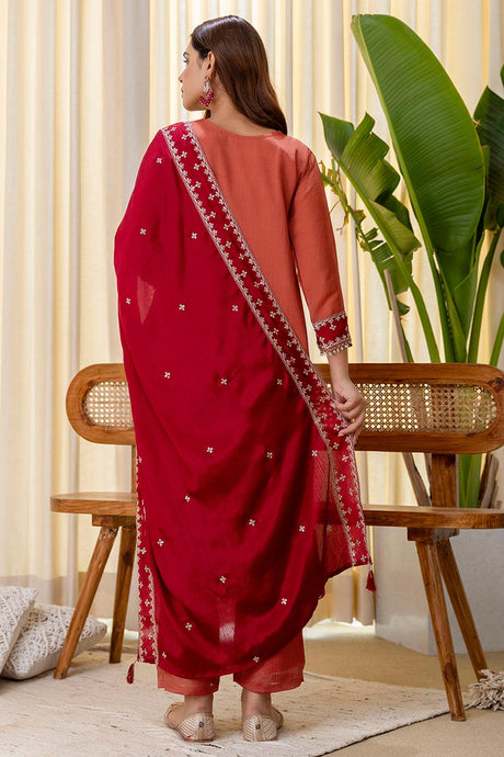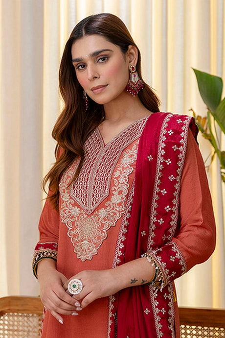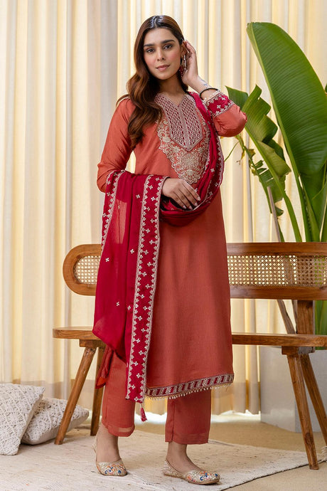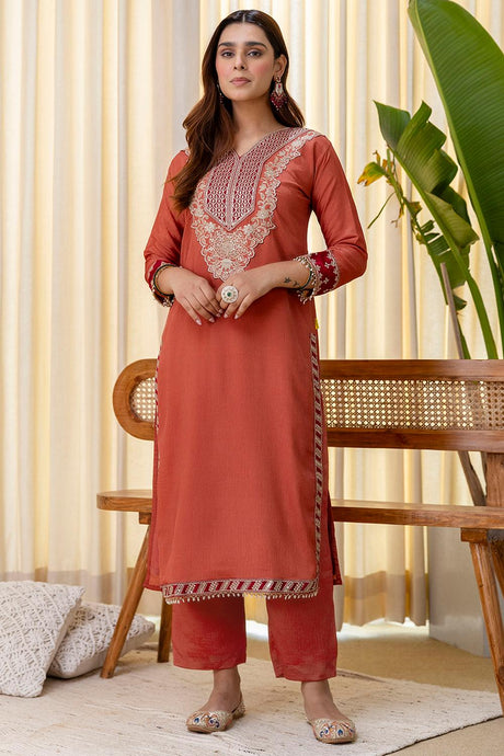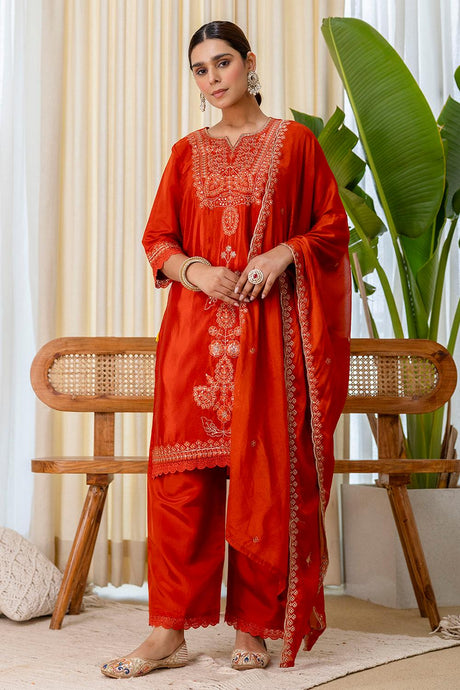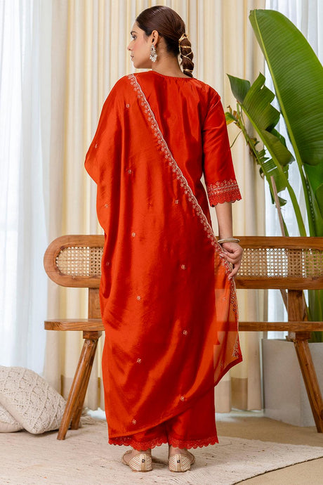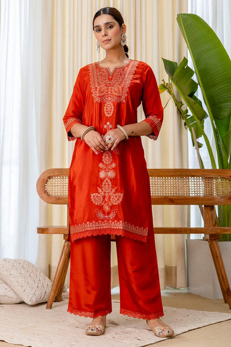 Orange Embroidered Chinon Palazzo Suits (RF30267)