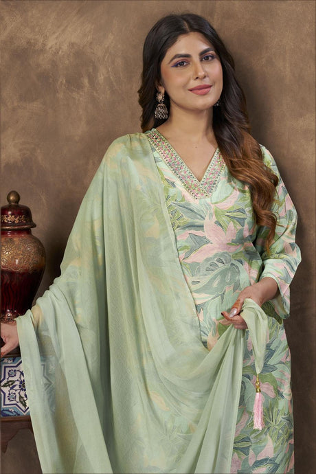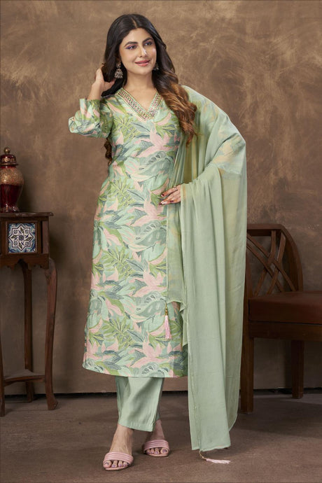 Green Floral Embroidered Silk Anarkali Suit (WM31-GREEN)