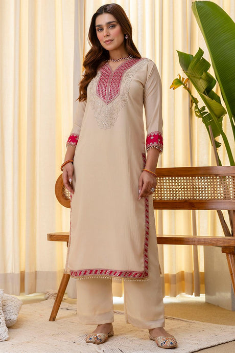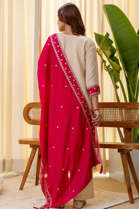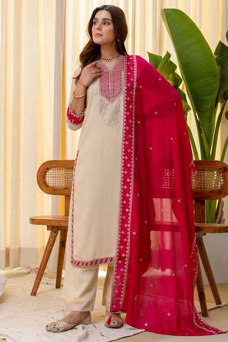 Cream Floral Embroidered Silk Anarkali Suit (WM31-CREAM)