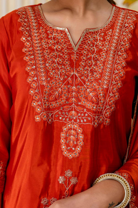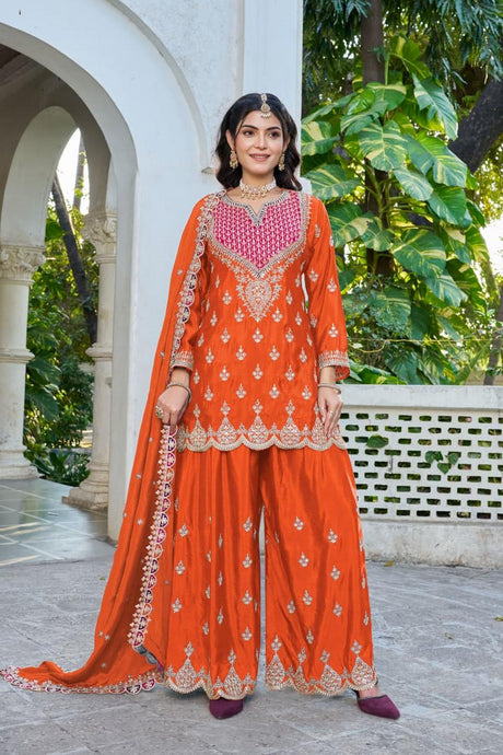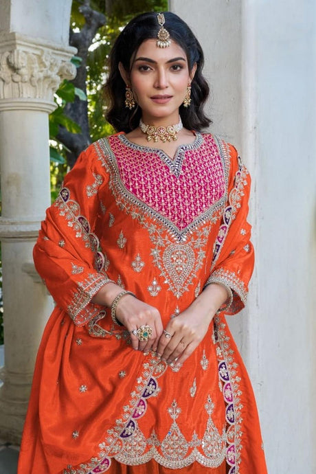 Orange Embroidered Chanderi Sharara Suit (WM33-ORANGE)