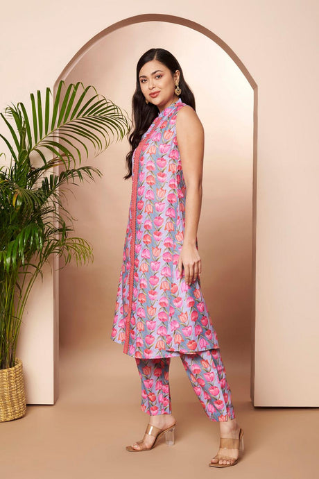 Pink Printed Cotton Kurti Pant Set (RF30065)
