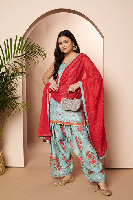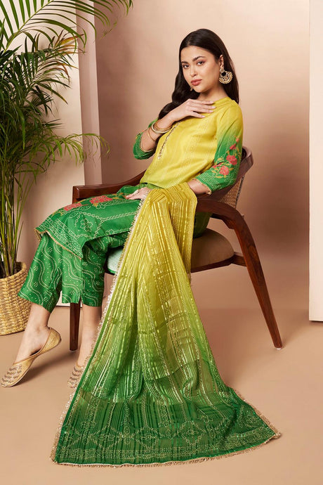 Green Floral Printed Silk Blend Kurti Palazzo Set (AHKUSLDU-COMBO-1166)