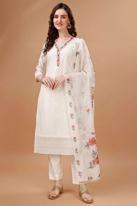 Boy's Blended Cotton Multicolor Kurta Set In White