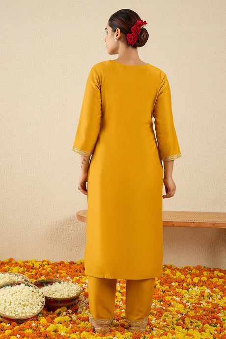 Boy's Blended Cotton Kurta Set In Yellow