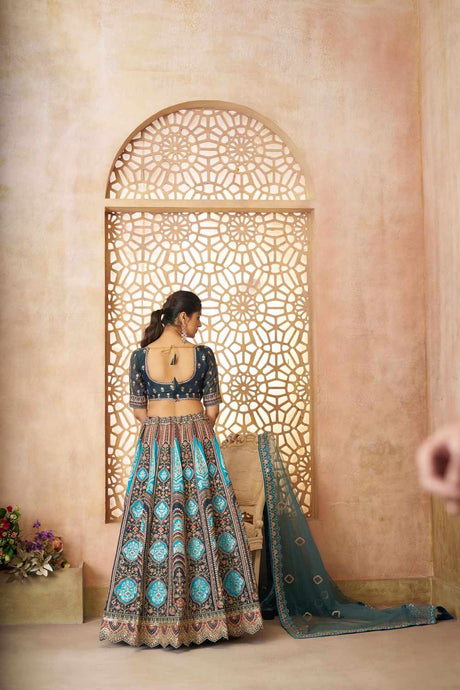 Boy's Blue Laheriya Kurta With Off-White Pajama Set