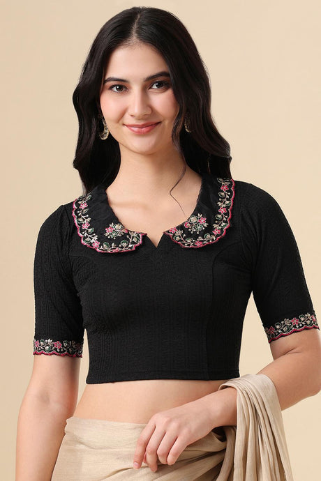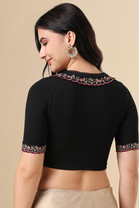 Black Embroidered Lycra Blouse (RF-0287-BLCK)