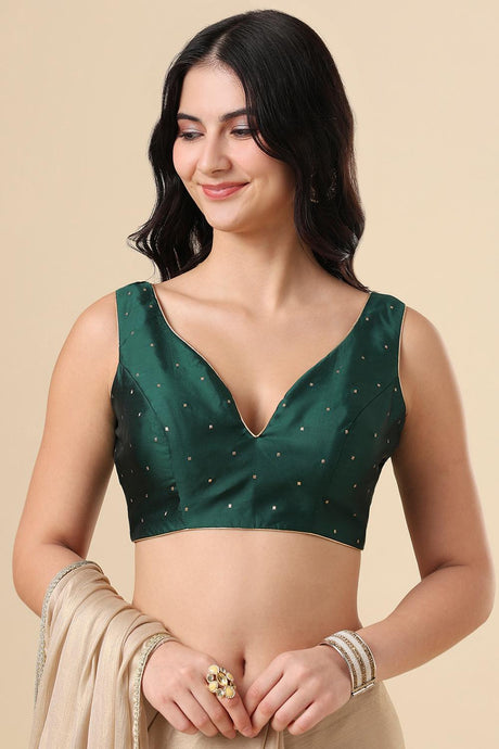 Bottle Green Woven Silk Blouse (SUMR-006-BGRN)