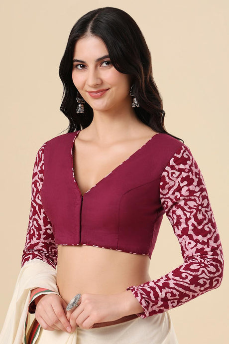 Maroon Printed Cotton Blouse (SUMR-001-MRON)