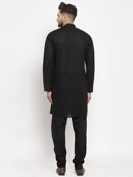 Men's Black Cotton Long Kurta Top