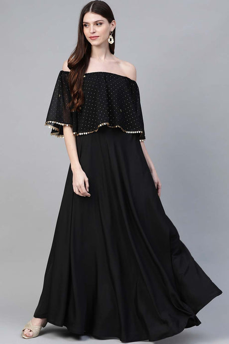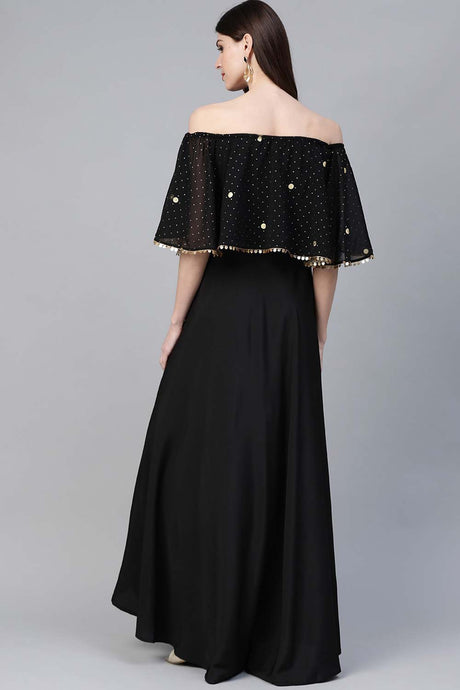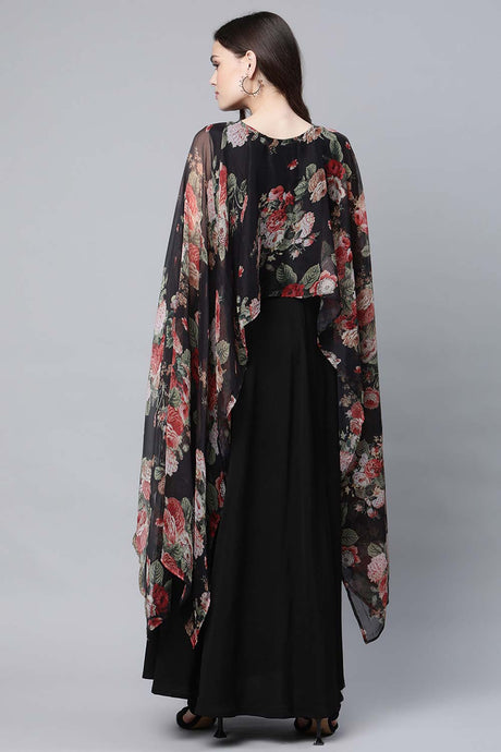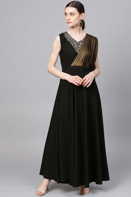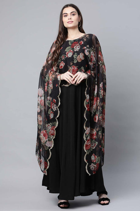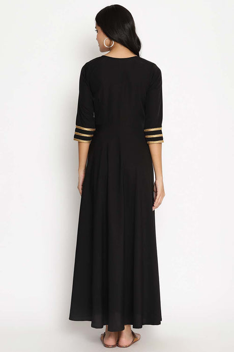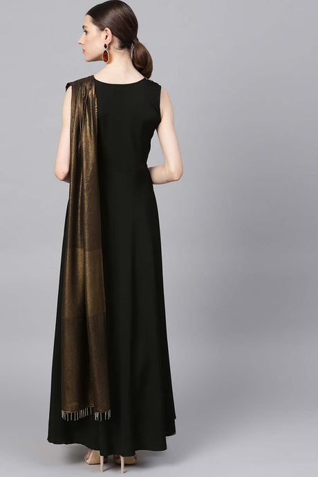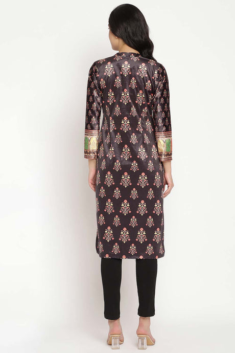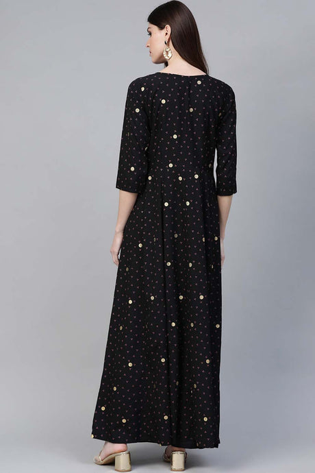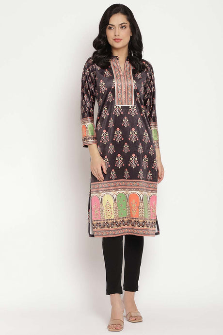 Boys Black Crepe Gold Pigment Print Kids Kurta Churidar Set