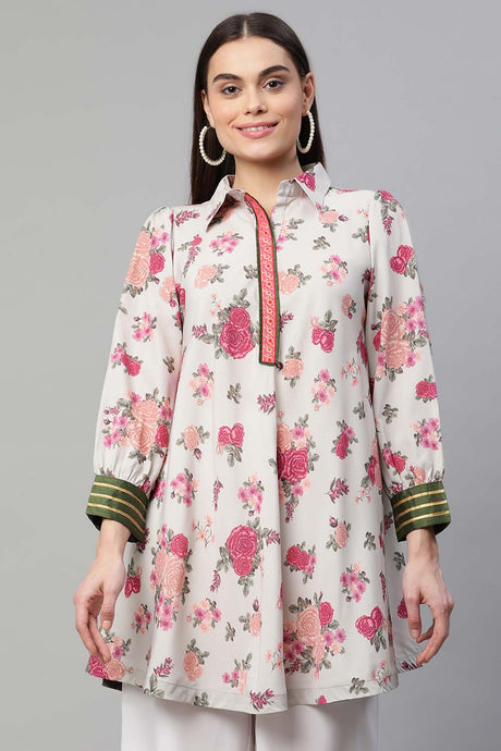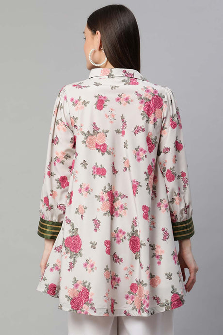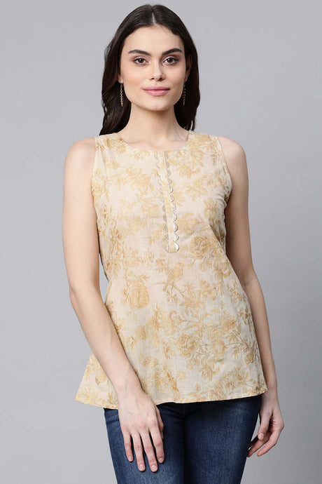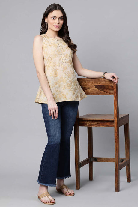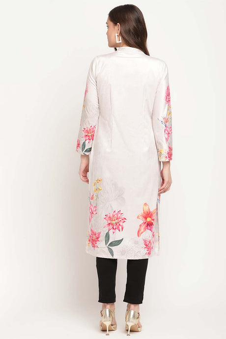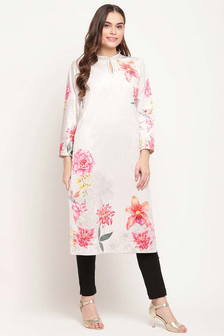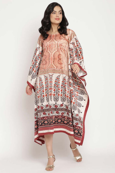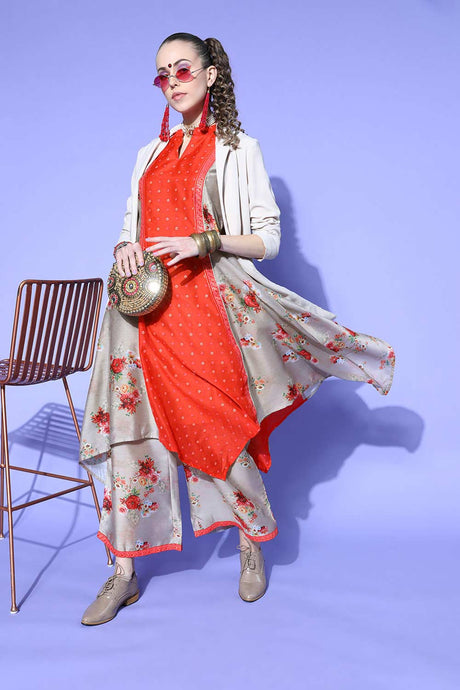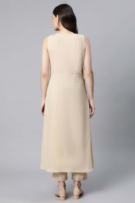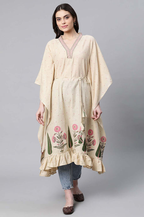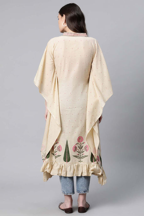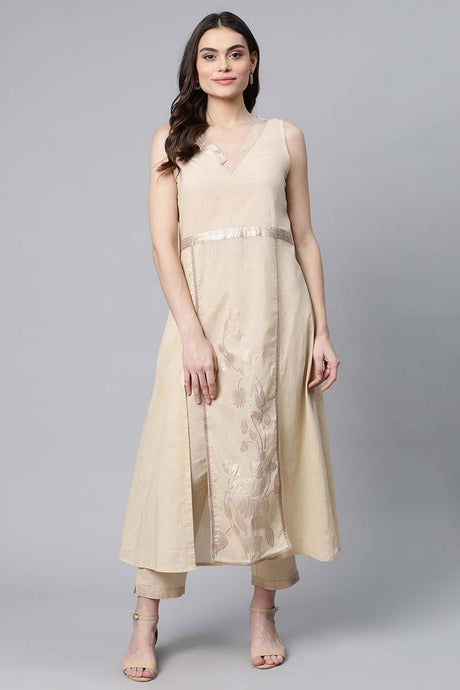 Cream Chanderi Gold Print Anarkali Kurti Dupatta Set