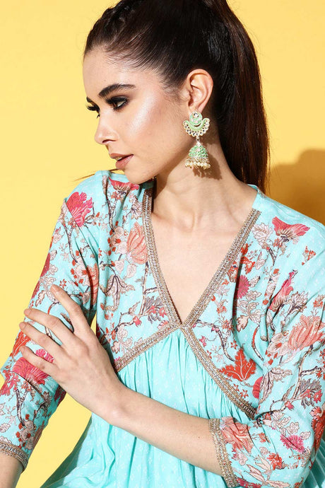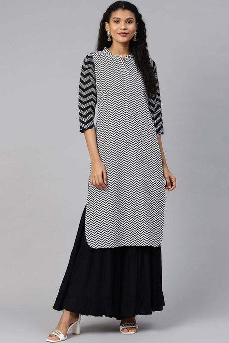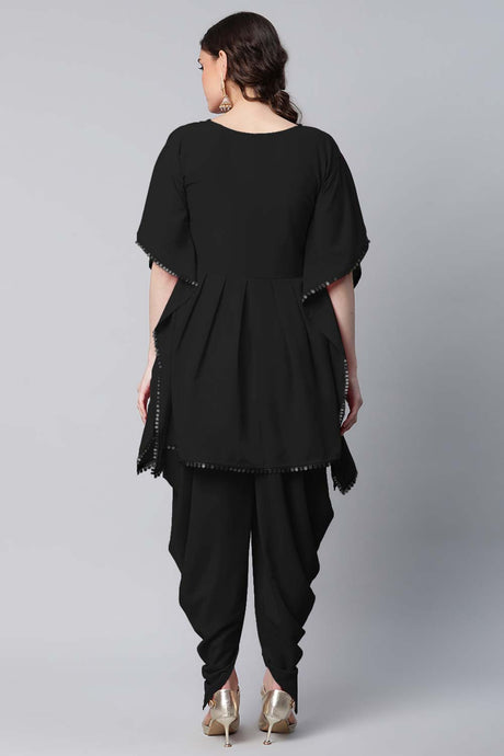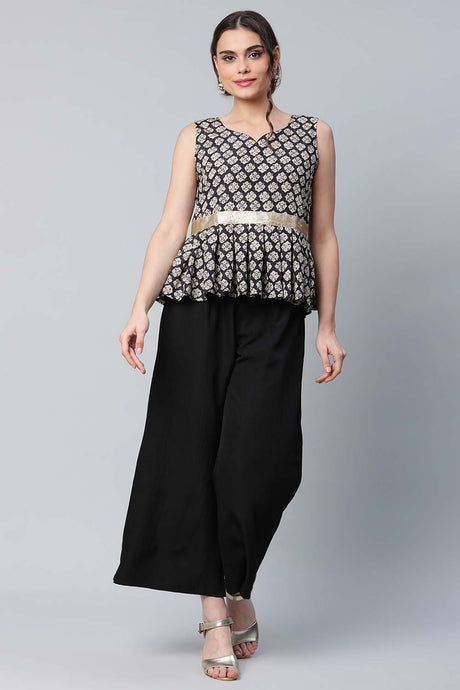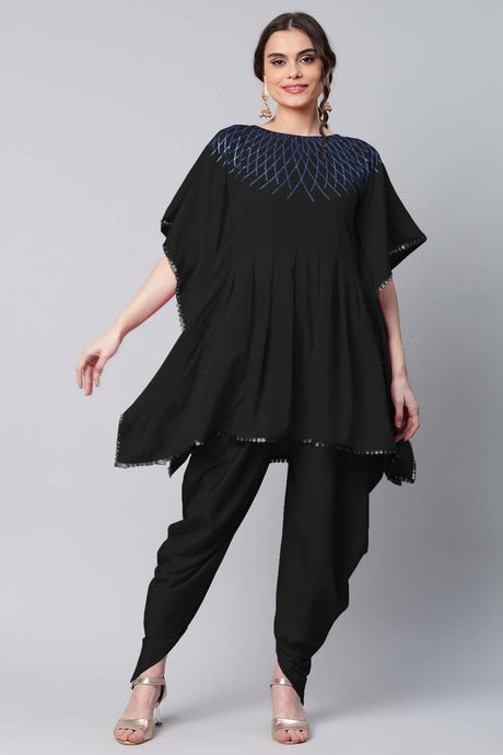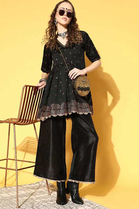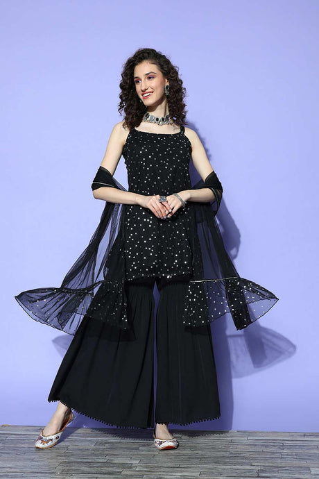 Navy Blue Color Crepe Foil Printed Kurta Sharara Set With Dupatta