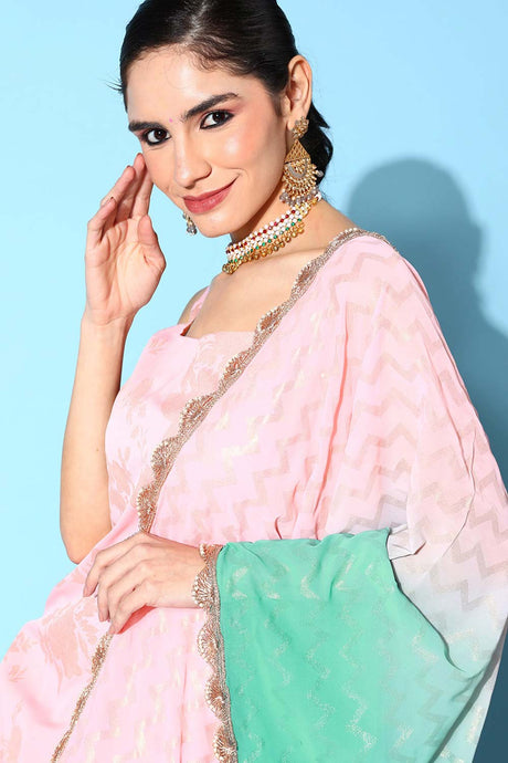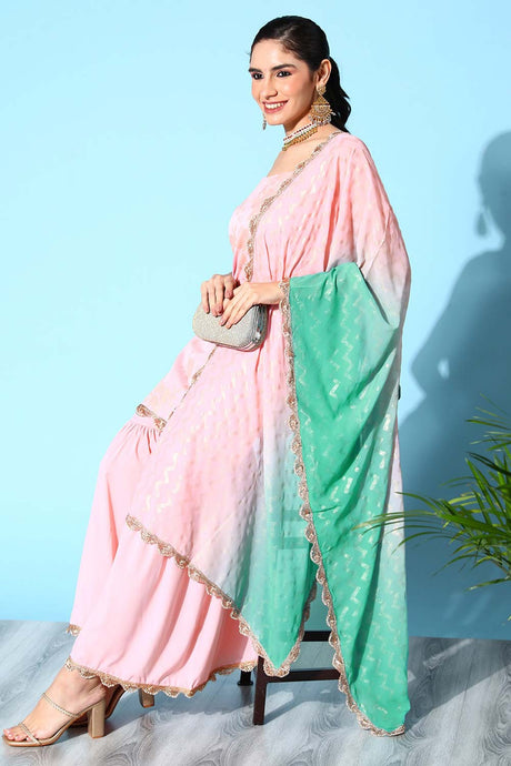 Pastel Pink Color Organza Glitter Printed Kurta Pant Set With Dupatta