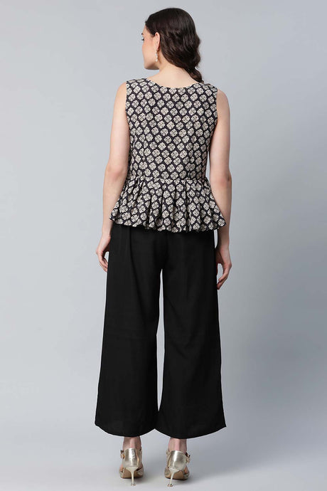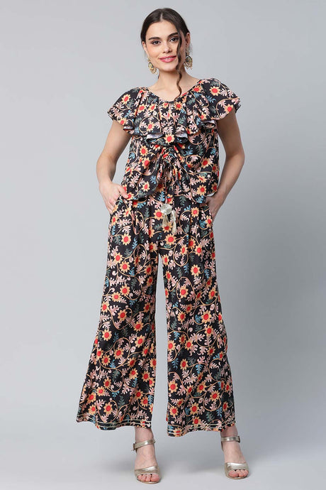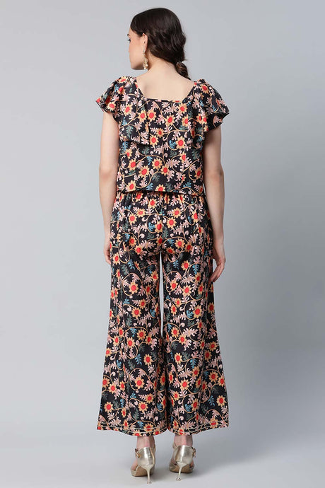 Burgundy Poly Crepe Printed Sharara Suit Set