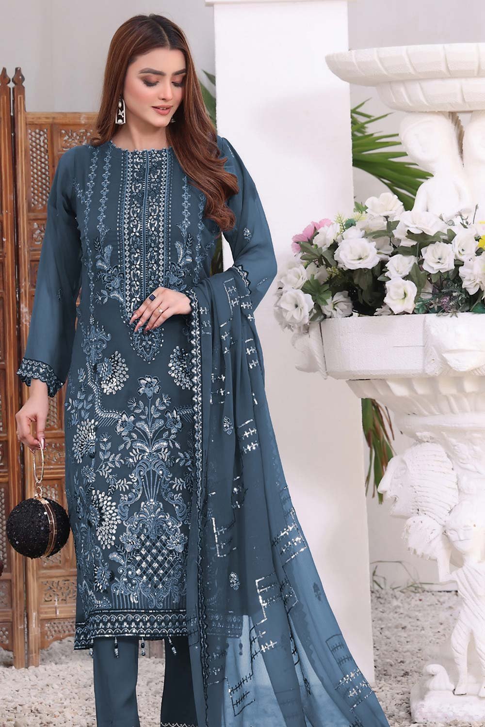 Aqua Blue Embroidered Georgette Pakistani Salwar Suit