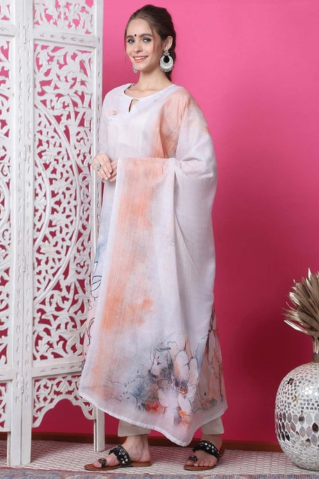 Off White Cotton Digital Printed Kurti Pant Set