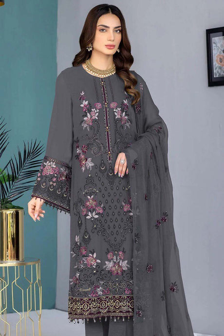 Grey Embroidered Georgette Pakistani Salwar Suit