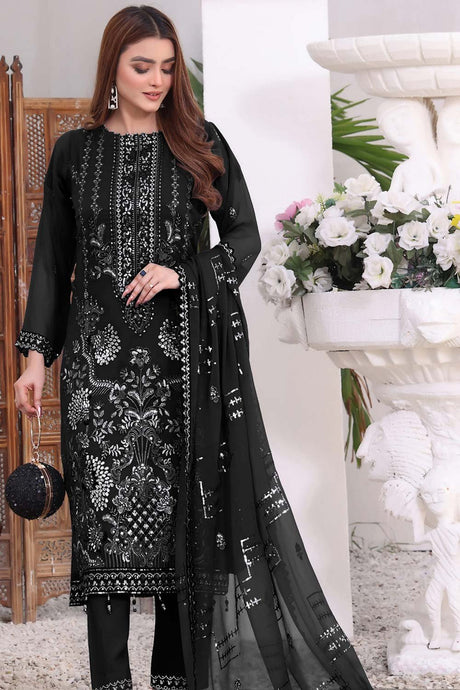 Dark Grey Embroidered Georgette Pakistani Salwar Suit