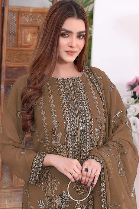 Brown Embroidered Georgette Pakistani Salwar Suit