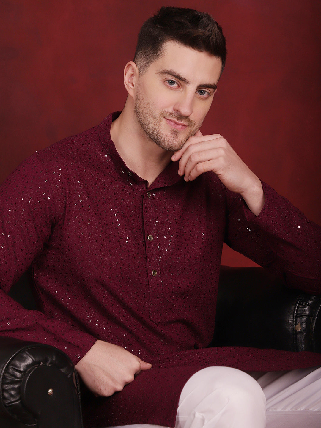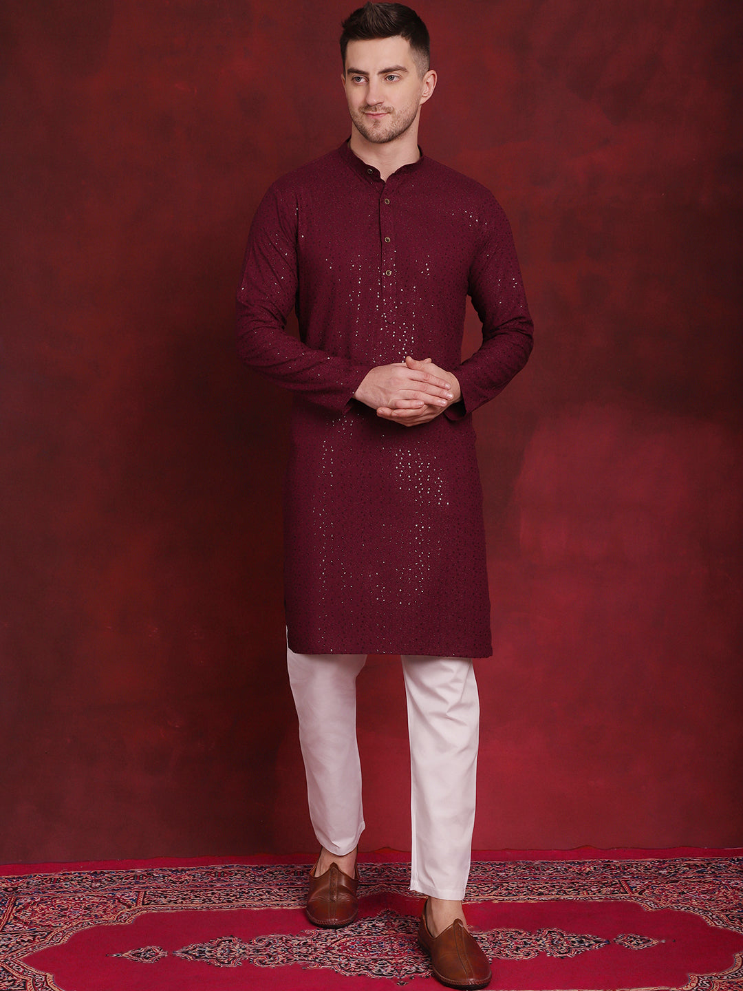 Men's Sequins Chikankari Kurta With Pajama