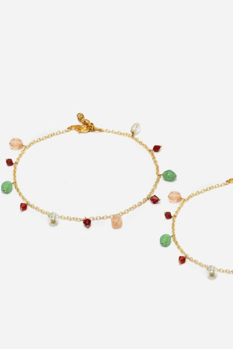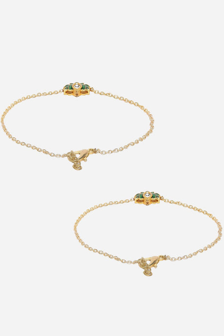 Green And Gold Adjustable Anklet With Kundan And Pearls
