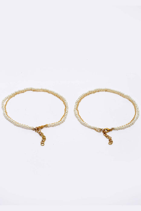 Gold And White Gold-Plated Pearls And Natural Stones Anklet