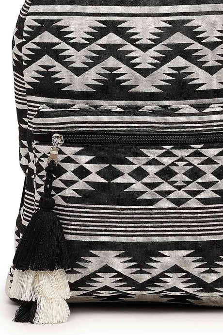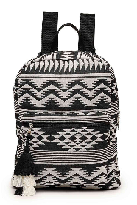 Tribal Tan And Multi Diamond Jacquard Cotton And Vegan Leather Backpack
