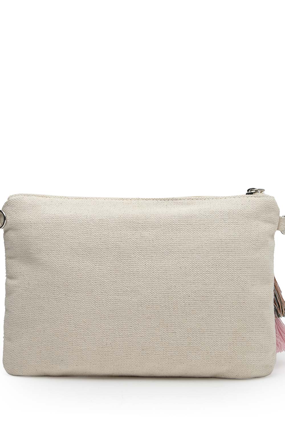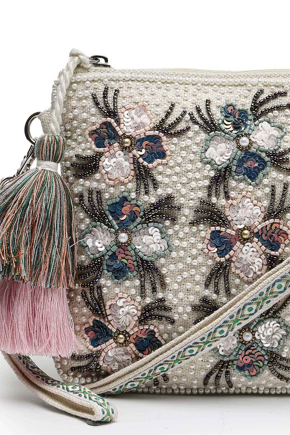 Kooky Beige And Multi Floral Embellished Handloom Cotton Canvas Sling Bag