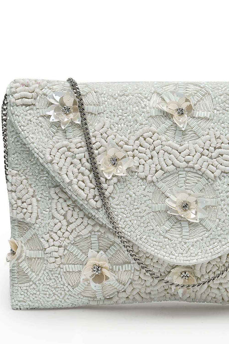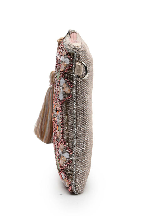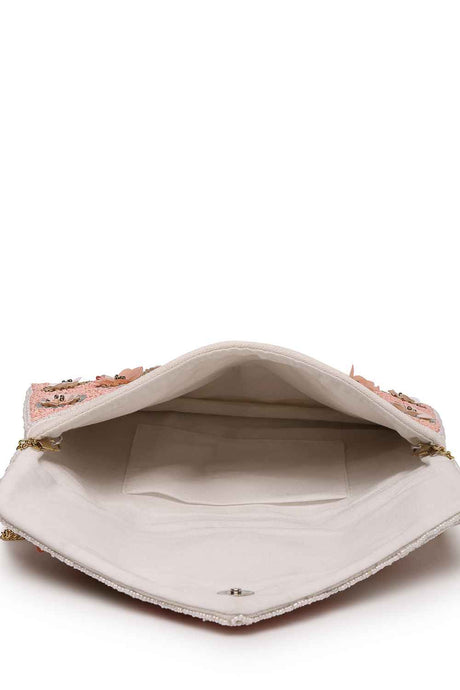 Ivory Scale & Paisley Embellished Satin Sling Bag