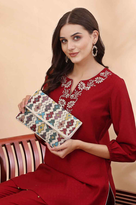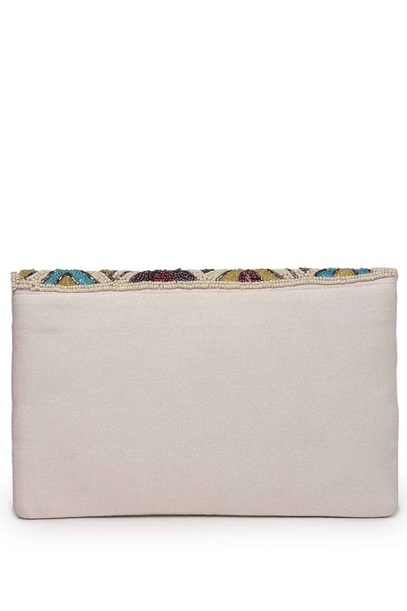White Ethnic Motifs Embellished Cotton Sling Bag