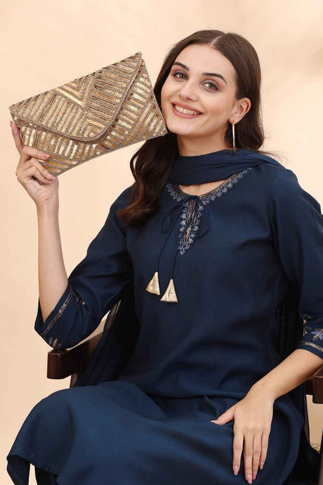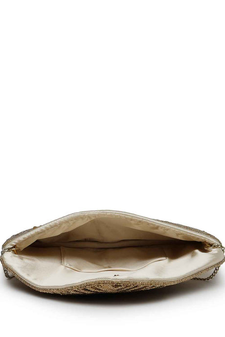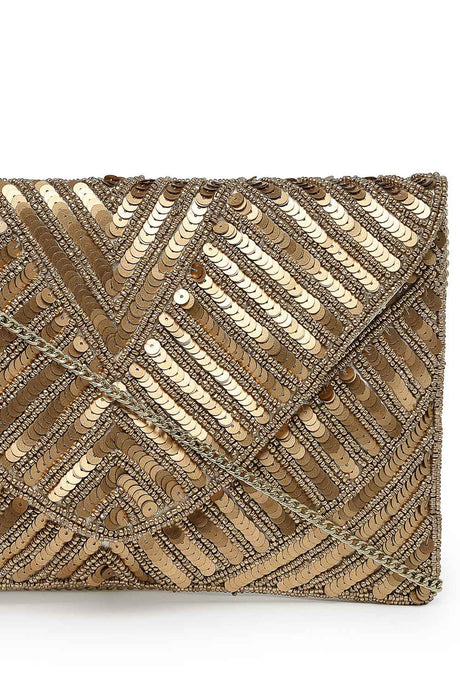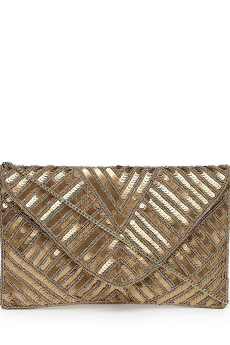 Gold Chevron Sequinned Embellished Satin Sling Bag