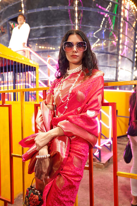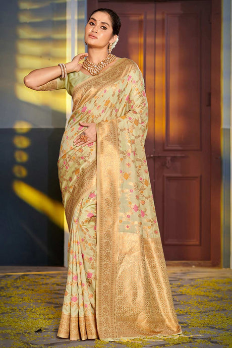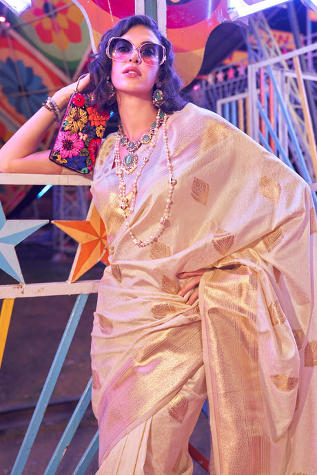 Sale price $76.00 USD Regular price $87.00Unit price /Unavailable Beige Banarasi Silk Woven Saree