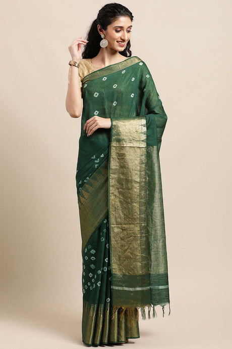 Brown Poly Cotton Bandhani Printed Handloom Saree