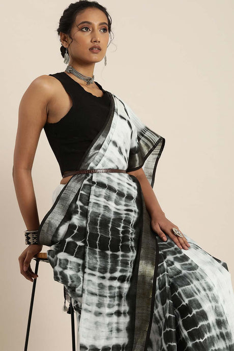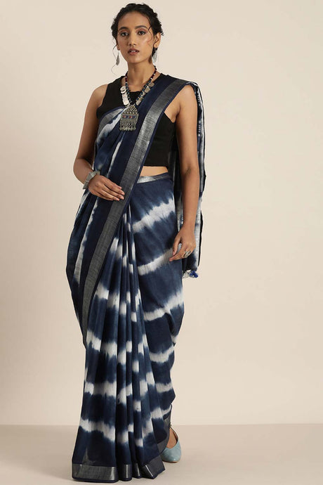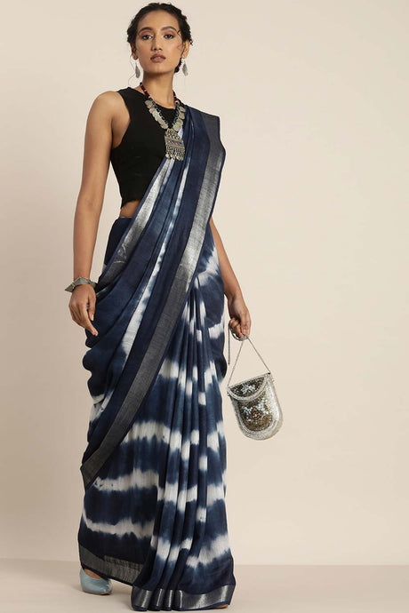 Navy Blue Poly Cotton Bandhani Printed Handloom Saree