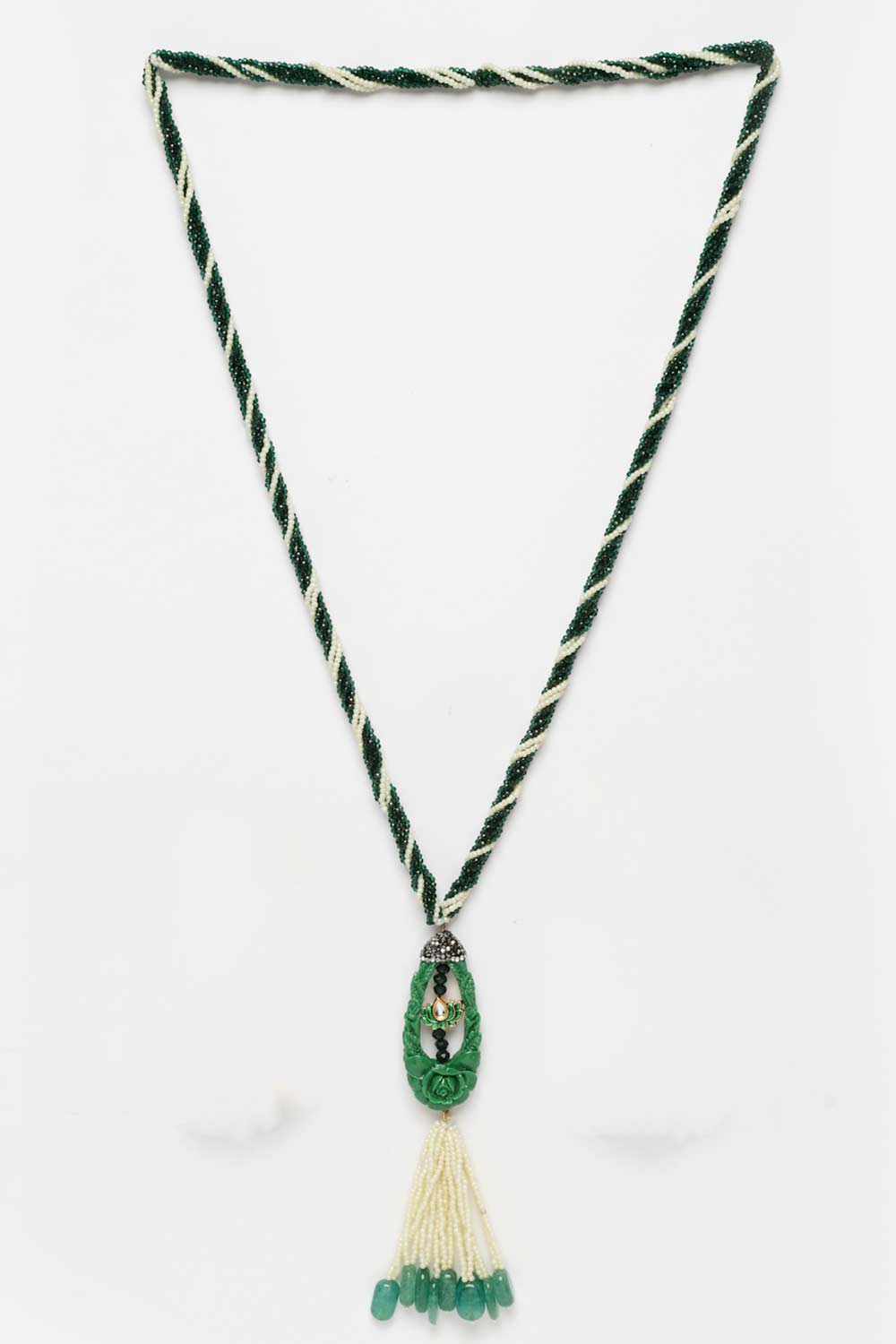 Green And Gold Gold-Plated Kundan And American Diamonds Bead Necklaces