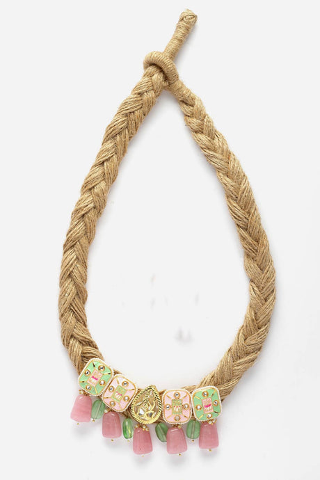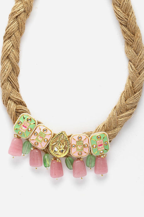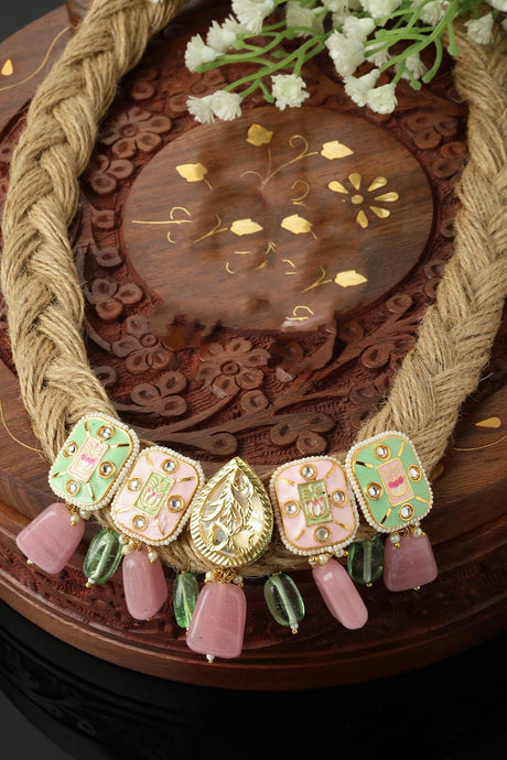 Pink And Gold Choker Necklace With Kundan And Pearls