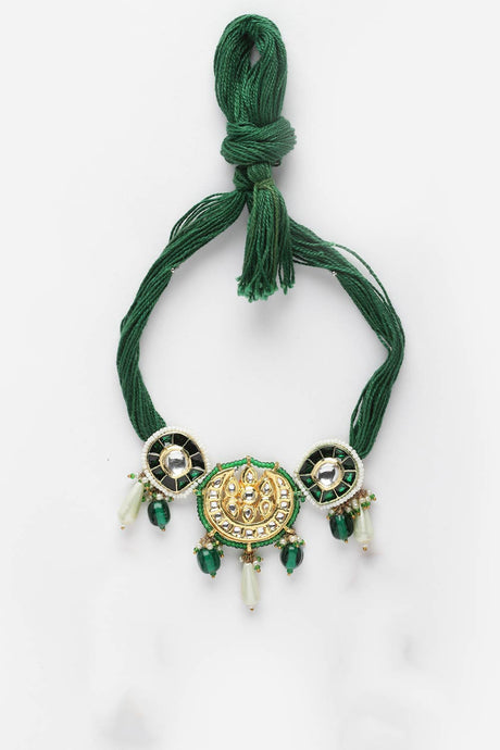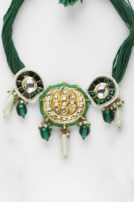 Green And Gold Choker Necklace With Kundan And Pearls